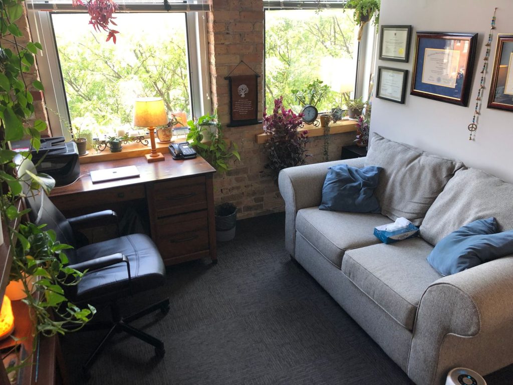 My office is located at 1300 W. Belmont Ave, Suite 400D, Chicago, IL 60657. It is in the Lakeview neighborhood and conveniently located a short walk from the brown, red, and purple line trains and is also accessible via the 77 Belmont bus. The closest train stops are the Southport Brown line station and the Belmont Red/Brown/Purple line station, both of which are about a 10 minute walk. The office is located at the intersection of Belmont and Lakewood Avenue. The office building is also handicap accessible.